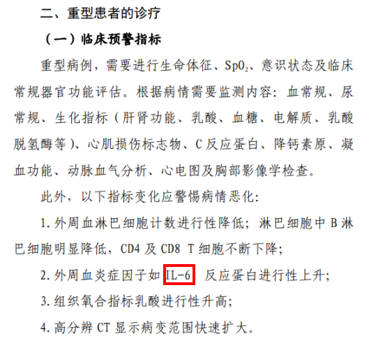 2)预警炎症细胞因子风暴所致的危重症发生可能,提前干预治疗,防止重症和死亡发生;