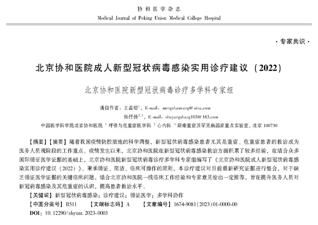 随着我国新型冠状病毒(下文简称“新冠病毒”)防控措施的科学调整,新冠病毒感染患者尤其是重症、危重症患者的救治成为医务人员现阶段的工作重点。北京协和医院特组织多学科专家编写了《北京协和医院成人新型冠状病毒感染实用诊疗建议(2022)》。