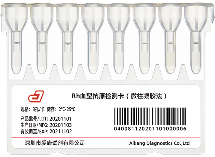 采用微柱凝胶法,8孔卡设计,用于Rh血型系统的C、c、E、e抗原的检测