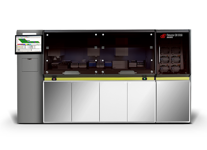 URANUS AE全自动酶免仪全自动完成ELISA实验,包括标本分配、试剂加注、振荡、孵育、洗板、酶标判读等检测流程,适用于各类血液机构。