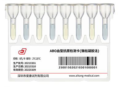 用于进行ABO血型正定型检测,可作为血型复查的常规检测卡